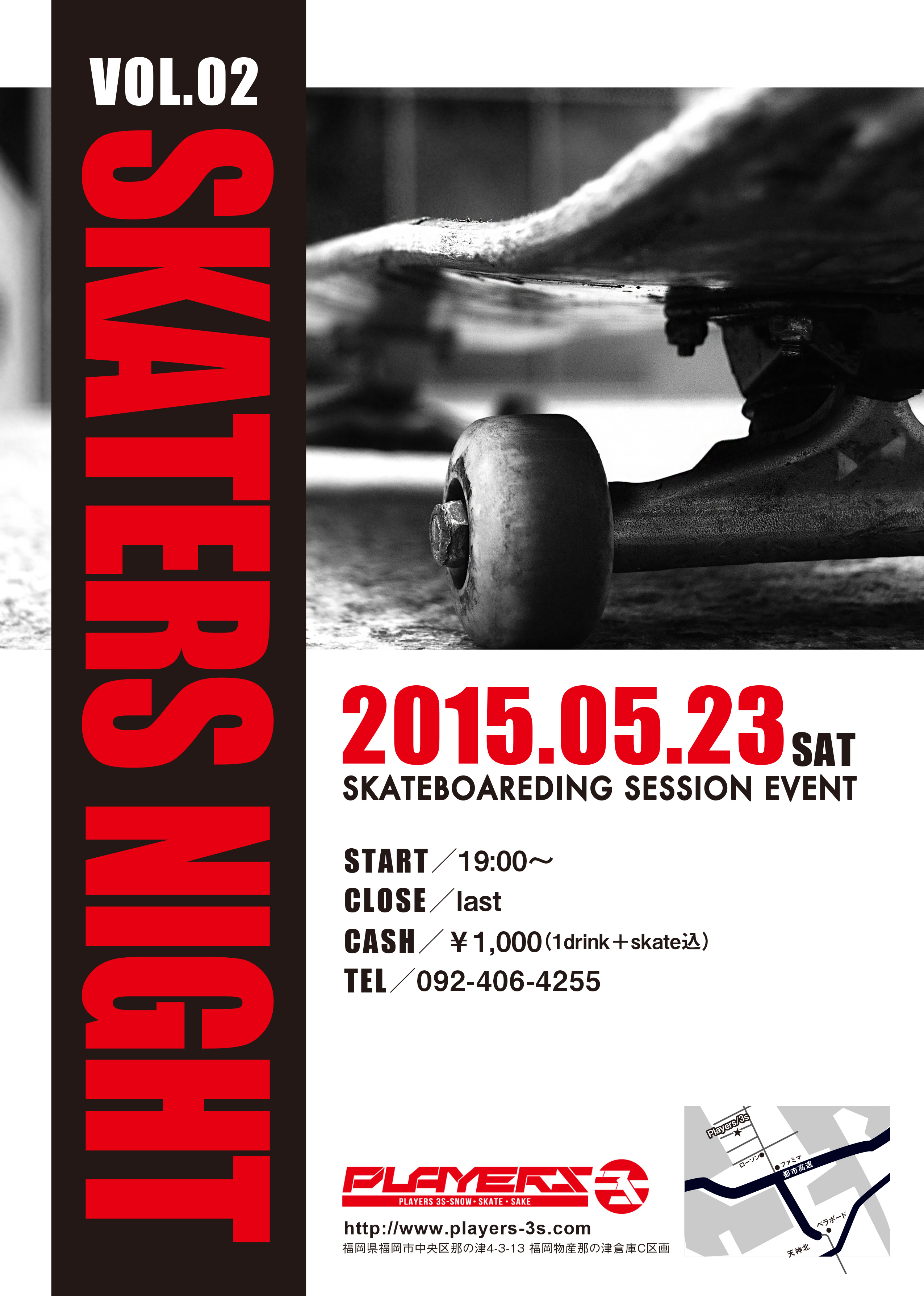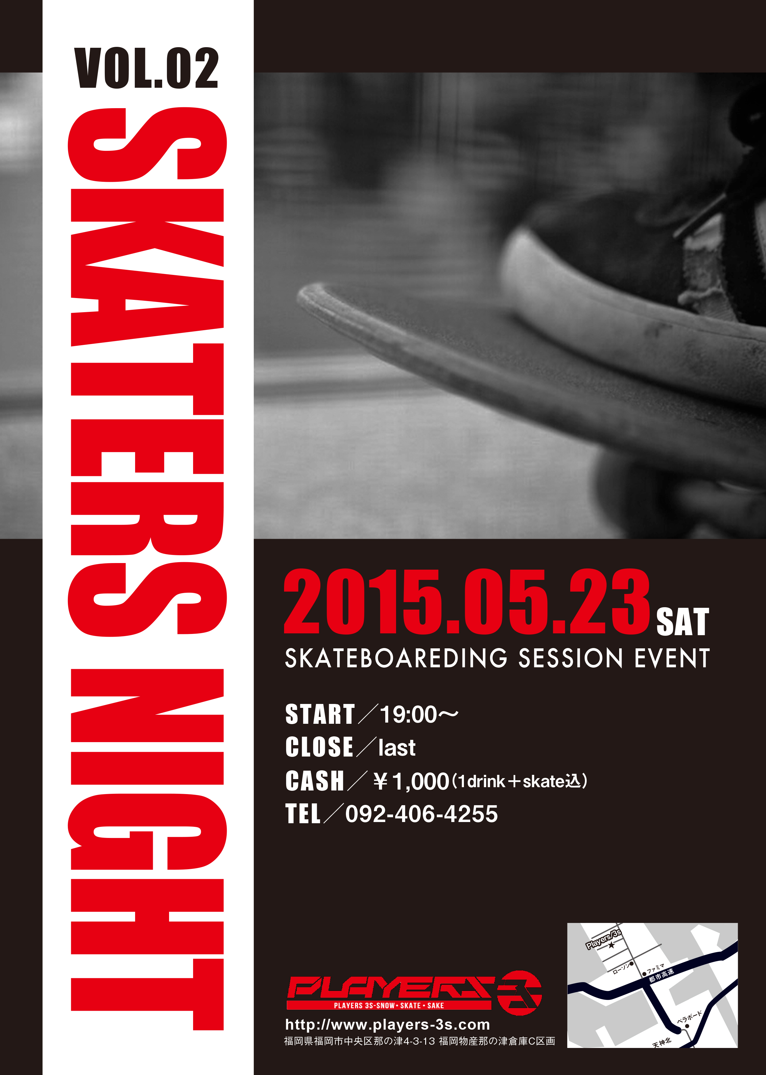 Skater’s Night vol.2開催します!! 2015年5月4日NEWS Tweet イベントのご紹介です!! 今月5月23日(土)19:00〜 去年おかげさまで好評だった 「SKATER’S NIGHT vol.2」 を開催したいと思います!! 以下詳細・・・日時:5月23日(土)19:00〜終日CASH:1000円(1DRINK&滑走代込み) 前回同様 飲んで滑って ただそれだけですww もちろん途中クラス分けしてベストトリック大会などもやりたいと思ってます!! お時間ある方はぜひ遊びに来てください!! お待ちしておりま〜〜す!! URL : TRACKBACK URL :